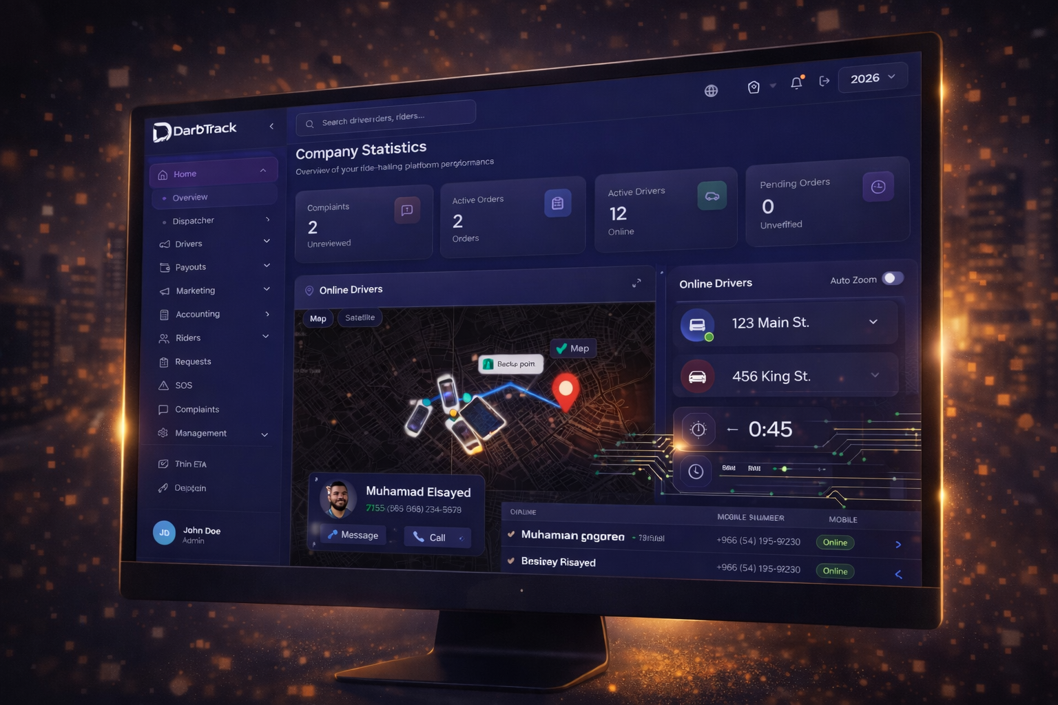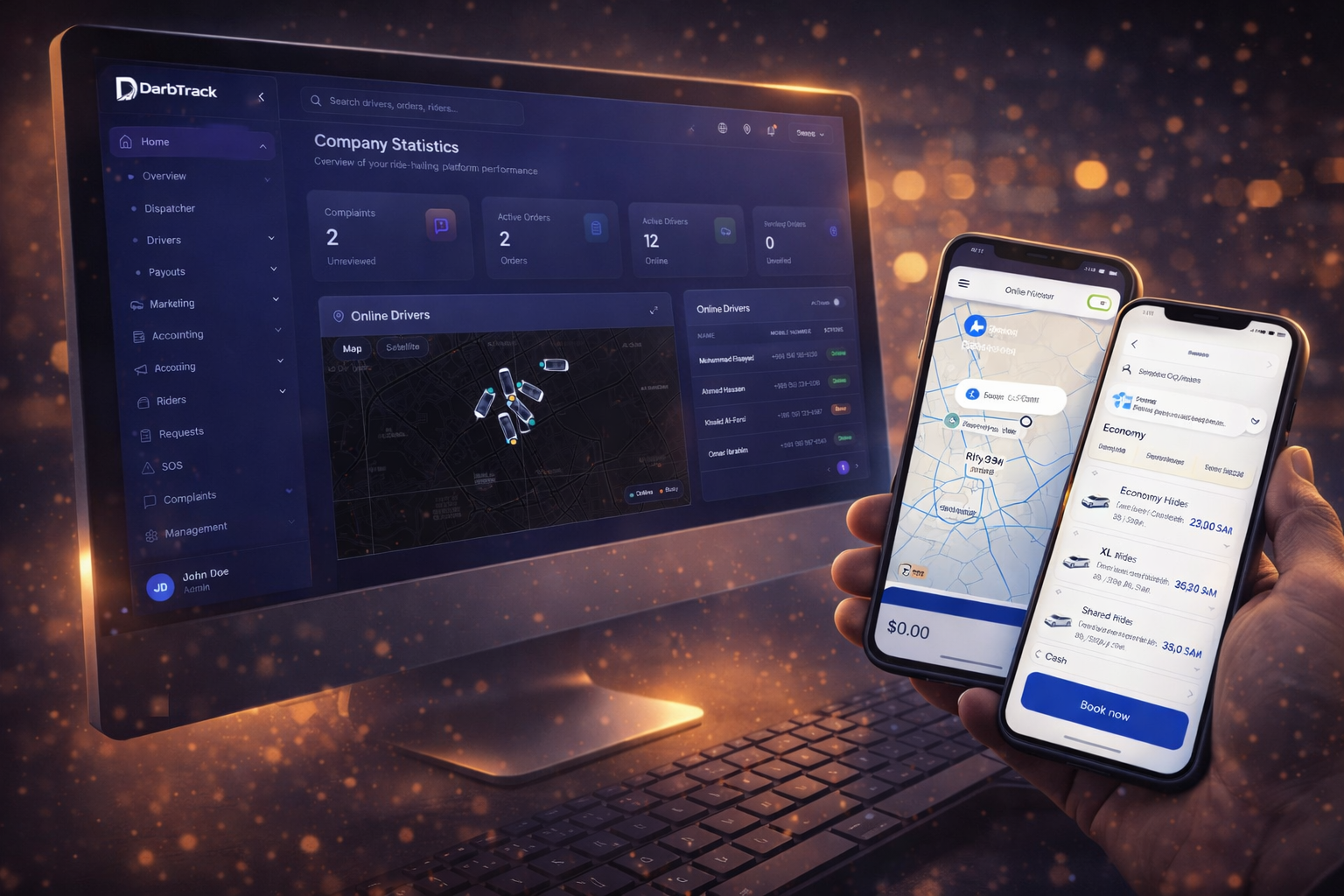إطلاق منصة نقل تشاركي مستقلة بالكامل، مشابهة لنماذج التشغيل العالمية،مع تطبيق راكب، تطبيق سائق، ولوحة تحكم تشغيلية متكاملة.